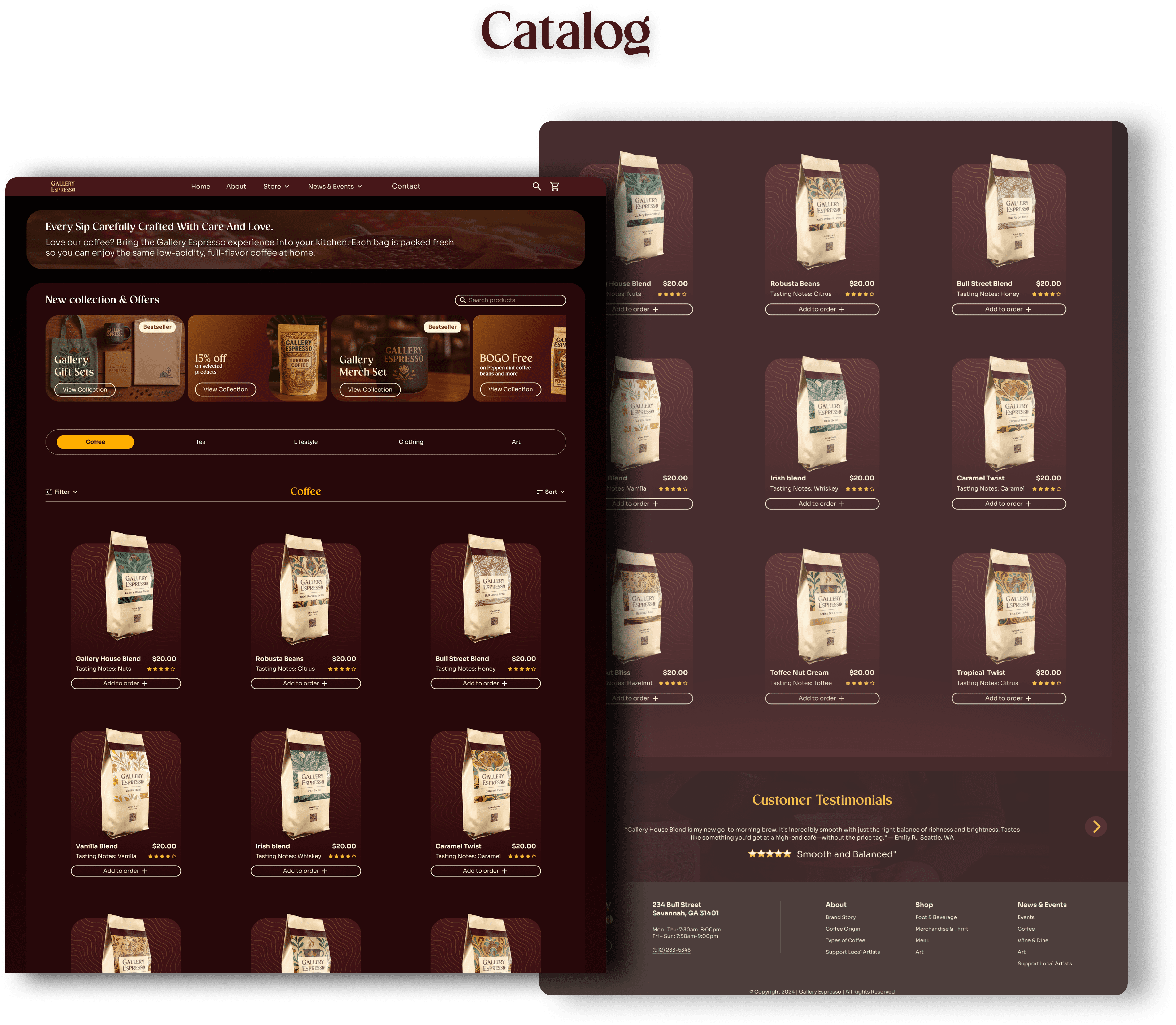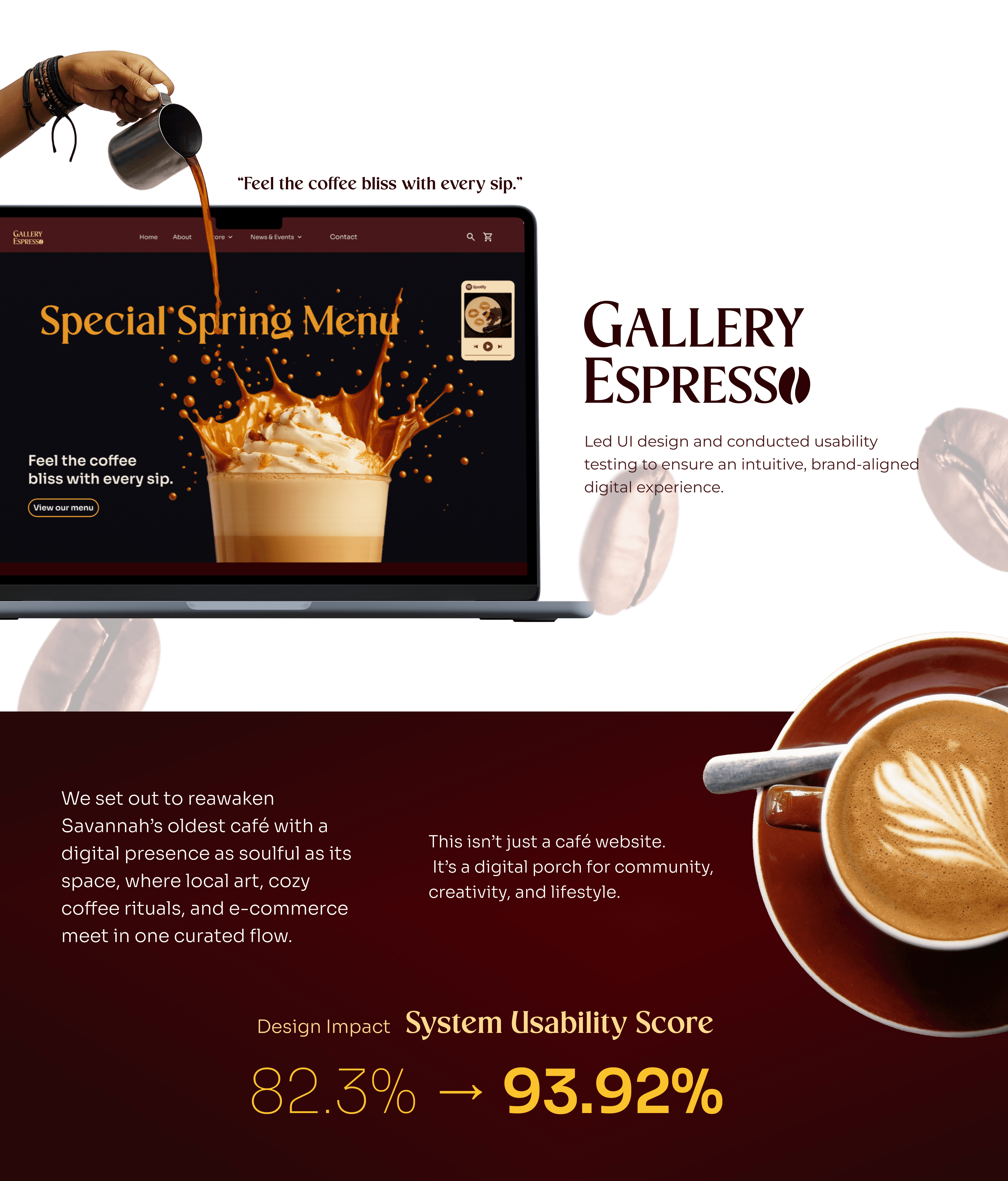 The current website for Gallery Espresso does not effectively represent the café’s cozy atmosphere, quality offerings, or community-focused art events.